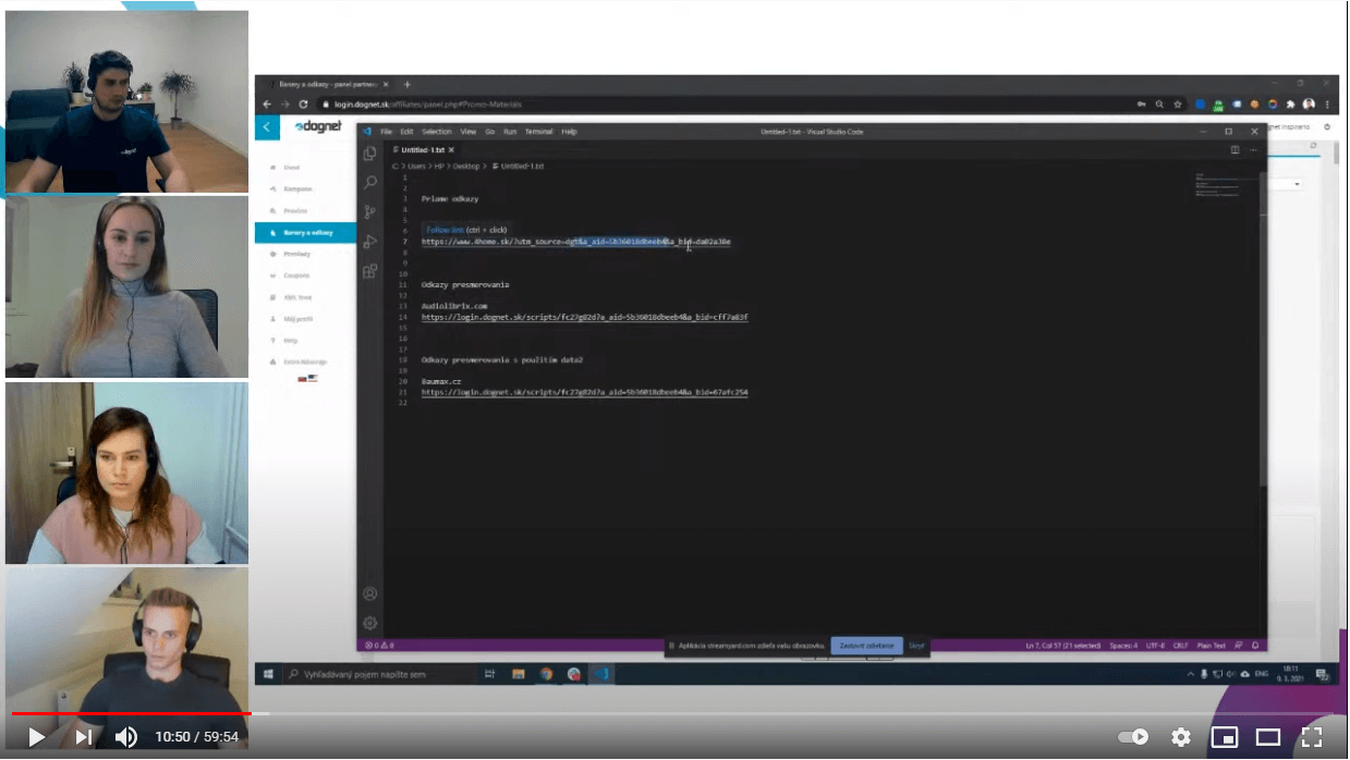 Vieme, že začiatky môžu byť komplikované a my ich chceme čo najviac uľahčiť. Webinár robíme každý druhý týždeň a prostredníctvom live streamu publisherom predstavíme Dognet, časť tímu, s ktorou budú najviac v kontakte, ukážeme im prácu s administráciou a naživo zodpovieme všetky ich otázky. Zatiaľ máme na webinár veľmi dobré ohlasy a tešíme sa, že ľuďom aj takýmto spôsobom otvárame dvere k novým skúsenostiam. Záznam z posledného webináru nájdete na našom Youtube.