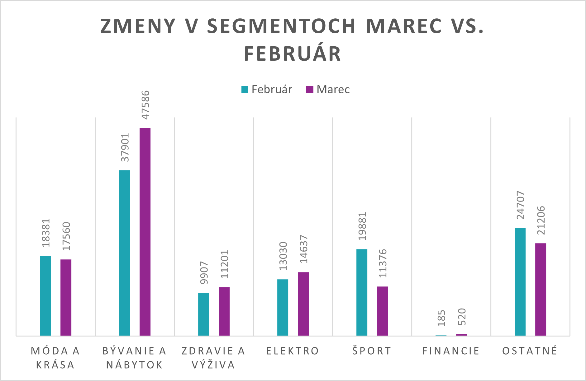 Zmeny v segmentoch marec 2021 vs. február 2021