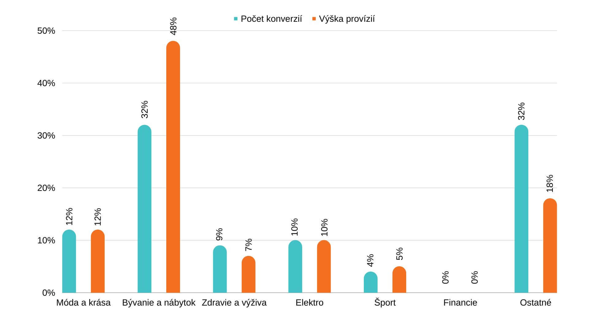Najvýraznejšia zmena nastala v segmente ostatné. V novembri pri porovnaní s októbrom sa podiel na celkovom počte konverzií zvýšil až o 10 %, pričom podiel na výške provízií sa zvýšil len o 3 %.