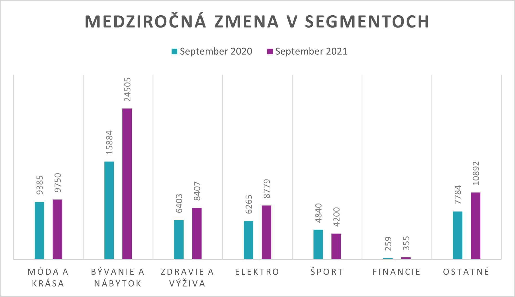 Zmeny v segmentoch september 2021 vs. september 2020