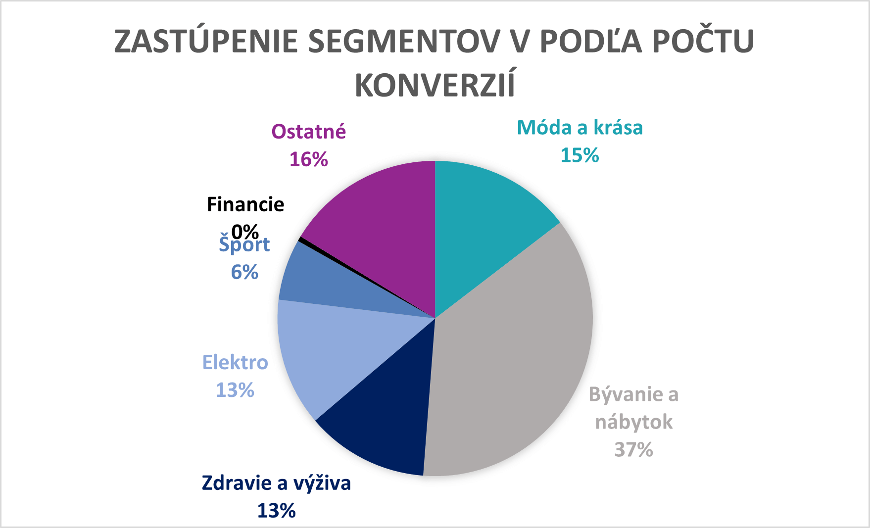 V segmente športu sme tento krát zaznamenali medziročný mierny pokles v počte konverzií. No naopak vo všetkých ostatných segmentoch sa počet konverzií zvýšil. Najvýraznejšie v segmente Bývanie a nábytok.